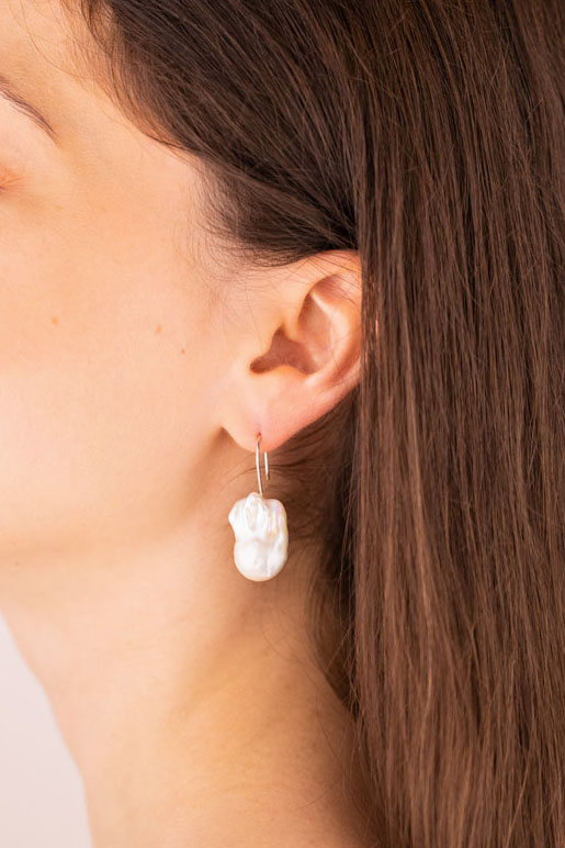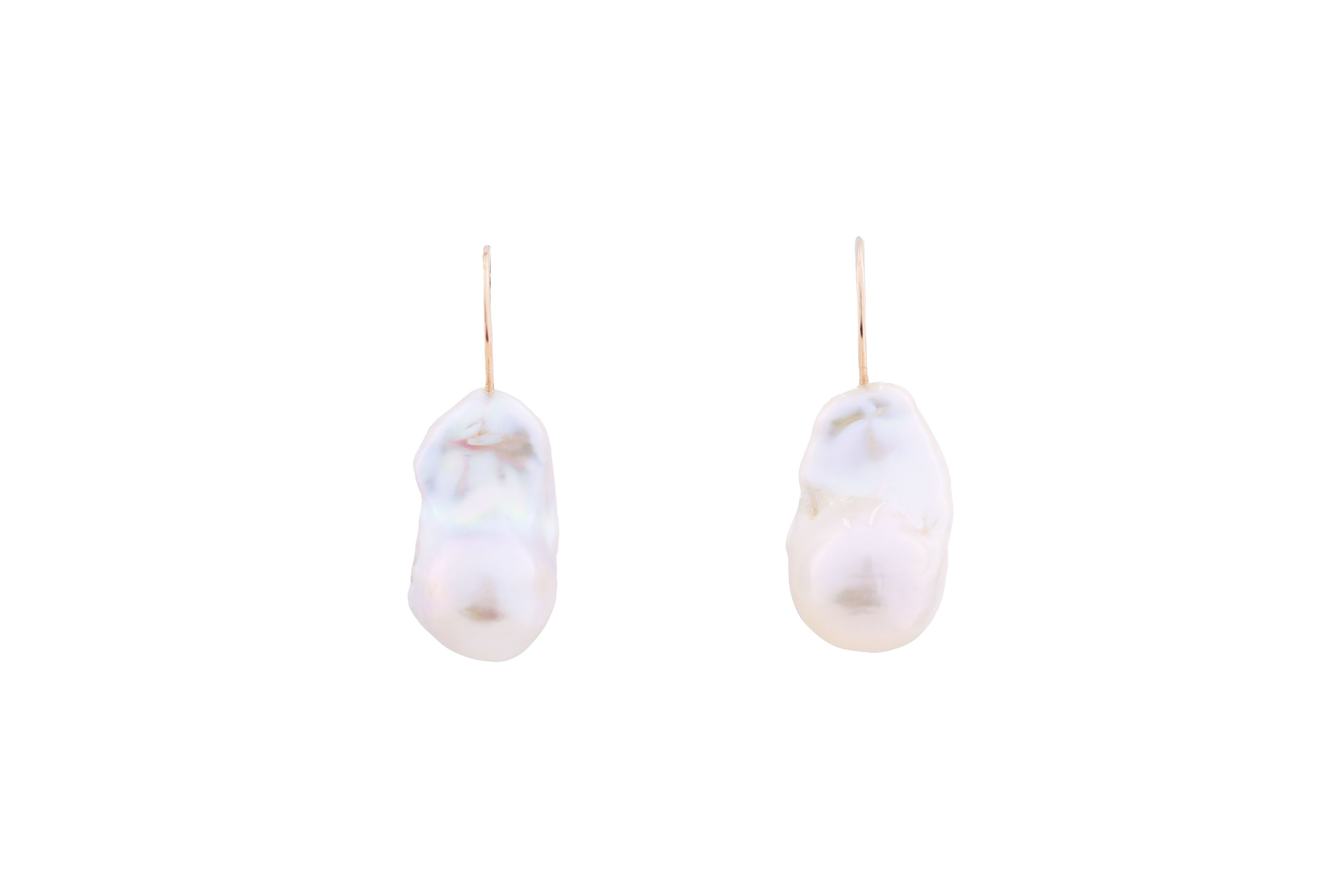 These handmade drop earrings feature freshwater baroque pearls, each pair carefully matched for harmonious balance yet remaining one of a kind.
