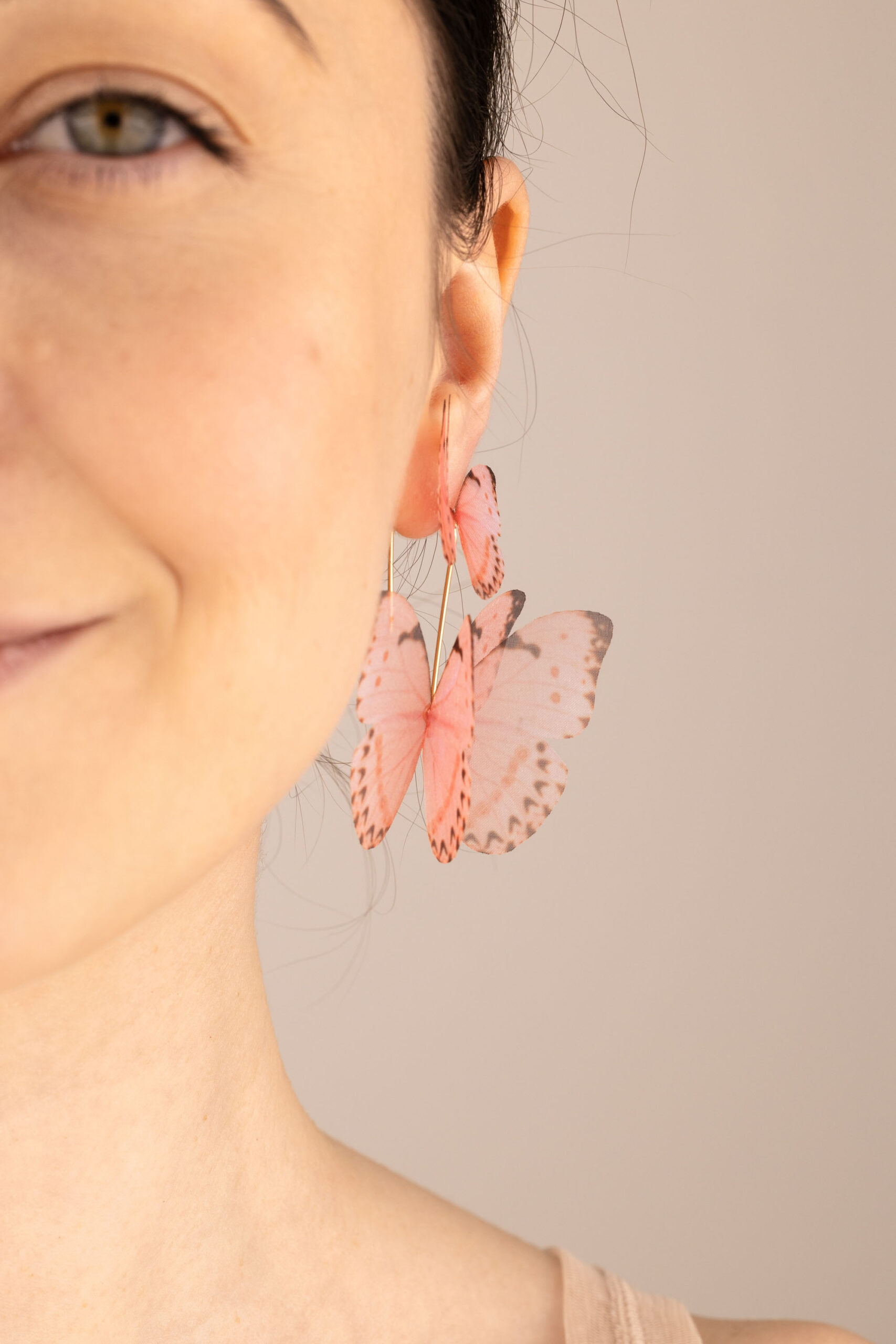 Butterfly Earrings – Dusty Pink With Extra Wings