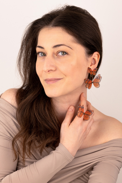 Butterfly Earrings With Extra Wings- Monarch