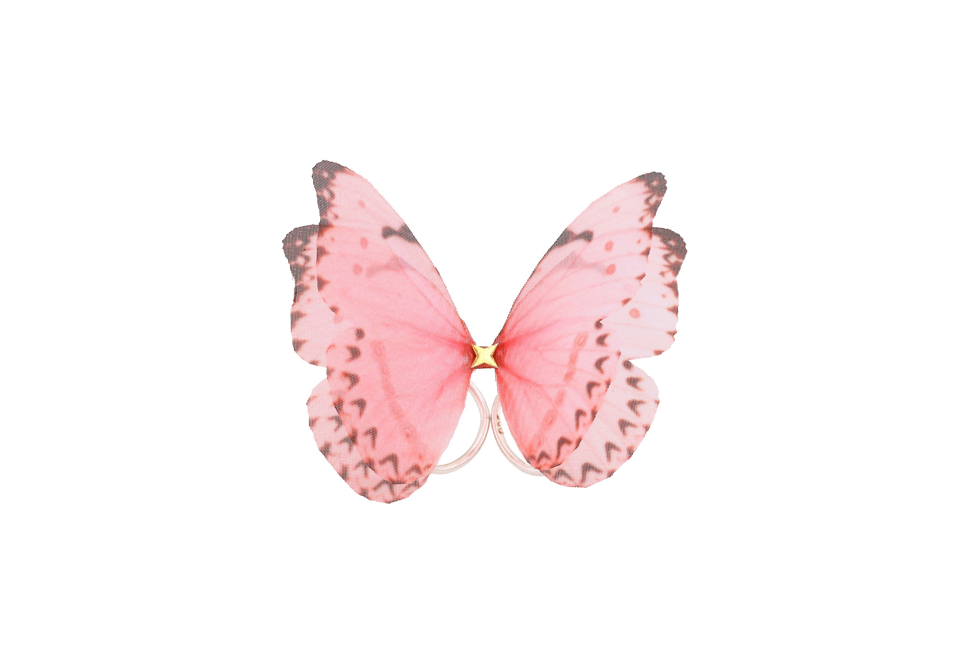 This fairy pink butterfly ring features pure silk butterfly wings, handcrafted and set on an adjustable sterling silver band for a comfortable fit. The natural silk properties create a lightweight, ethereal design that makes the wings flutter in a lifelike movement.
