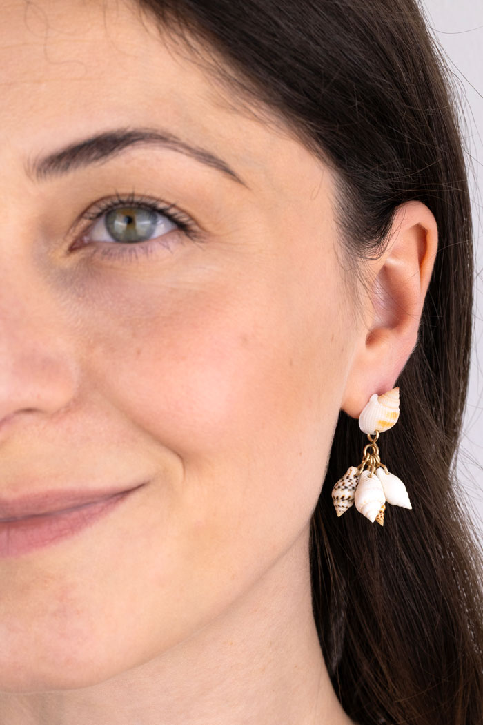 One-of-a-kind earrings, featuring a bunch of tiny shells with different patterns, set on 14K Gold-Filled studs and wire.