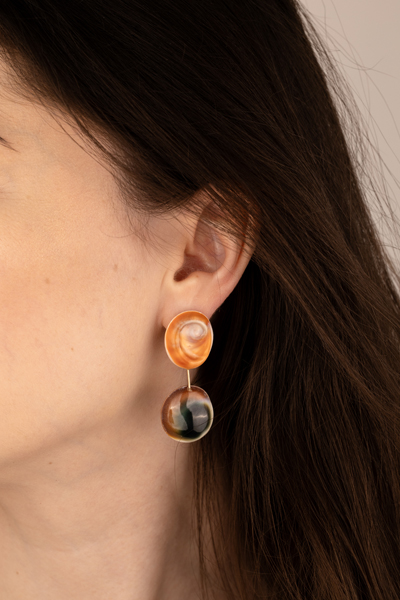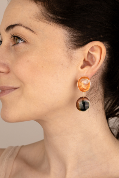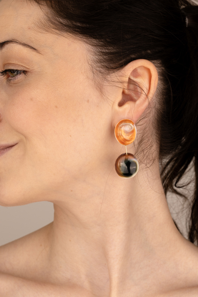 Crafted from two exceptionally rare seashells, this pair balances warmth and depth.
